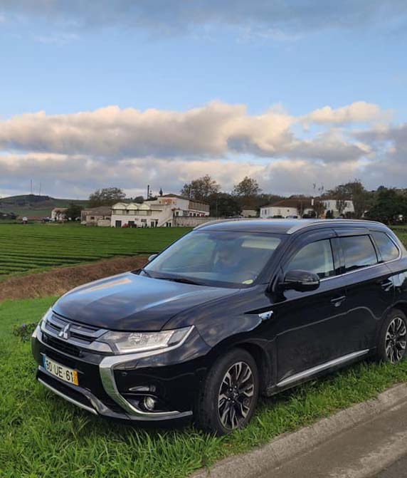 Viatura elétrica com 4 lugares disponíveis. Inclui motorista privado.